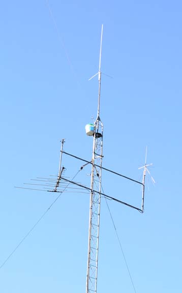 Run either 5V or 120 VAC up the tower.